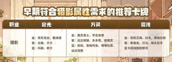 早期符合獵影屬性需求的推薦卡牌如下: