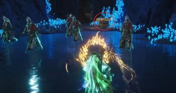 4、在圖示標記的區域尋找寶箱,開啟後即可獲得【兜鍪】。
